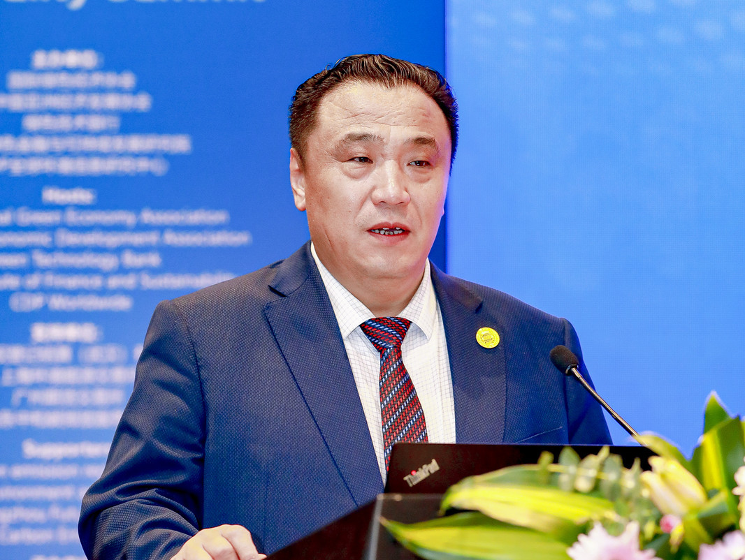 国际绿色经济协会执行会长邓继海,中国金融学会绿色金融委员会主任、北京绿色金融与可持续发展研究院院长马骏分别发表致辞。
